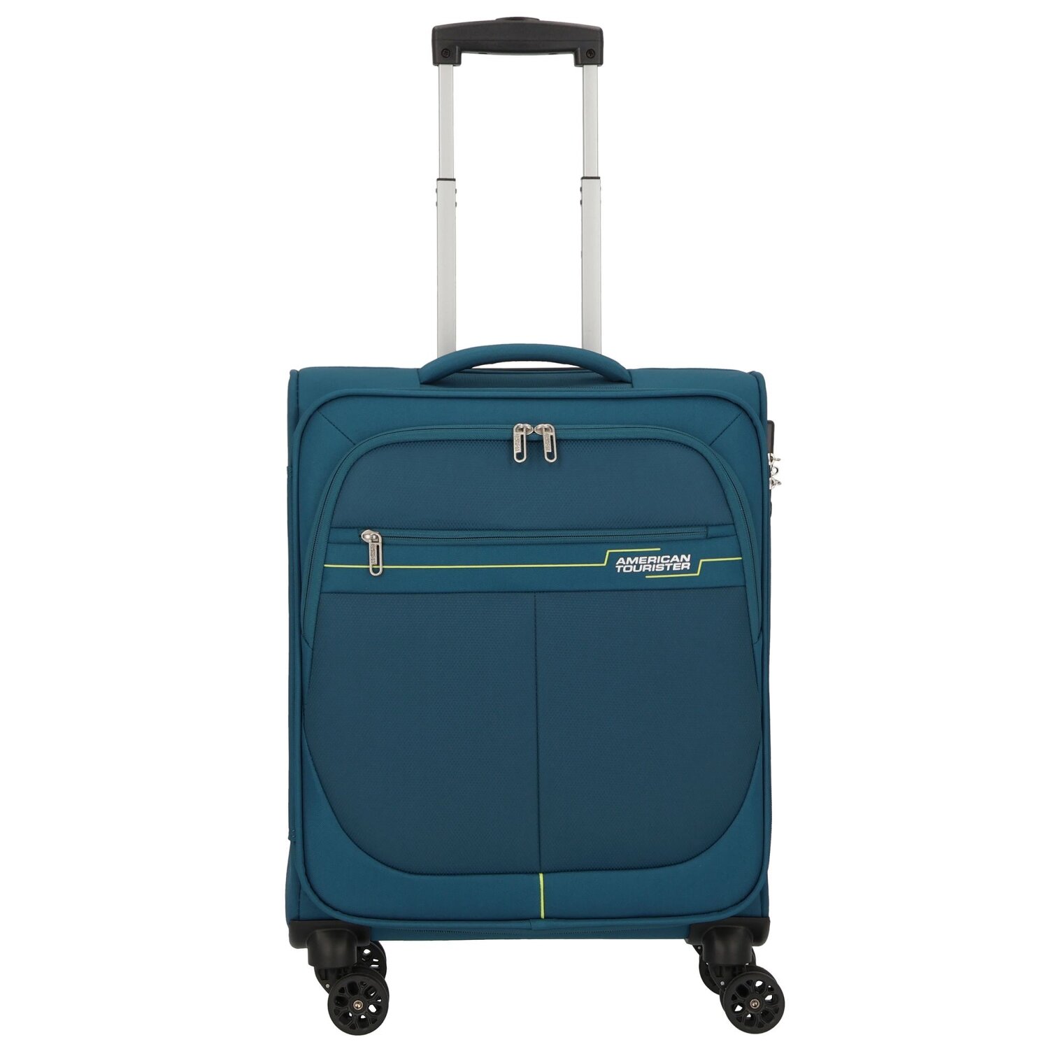 Trolley de cabina deportivo de American Tourister fabricado en poliéster robusto con asa telescópica, cuatro ruedas resistentes, compartimento para camisas, un compartimento exterior y correa para llevar cruzado. El compañero de confianza para tu próximo viaje.