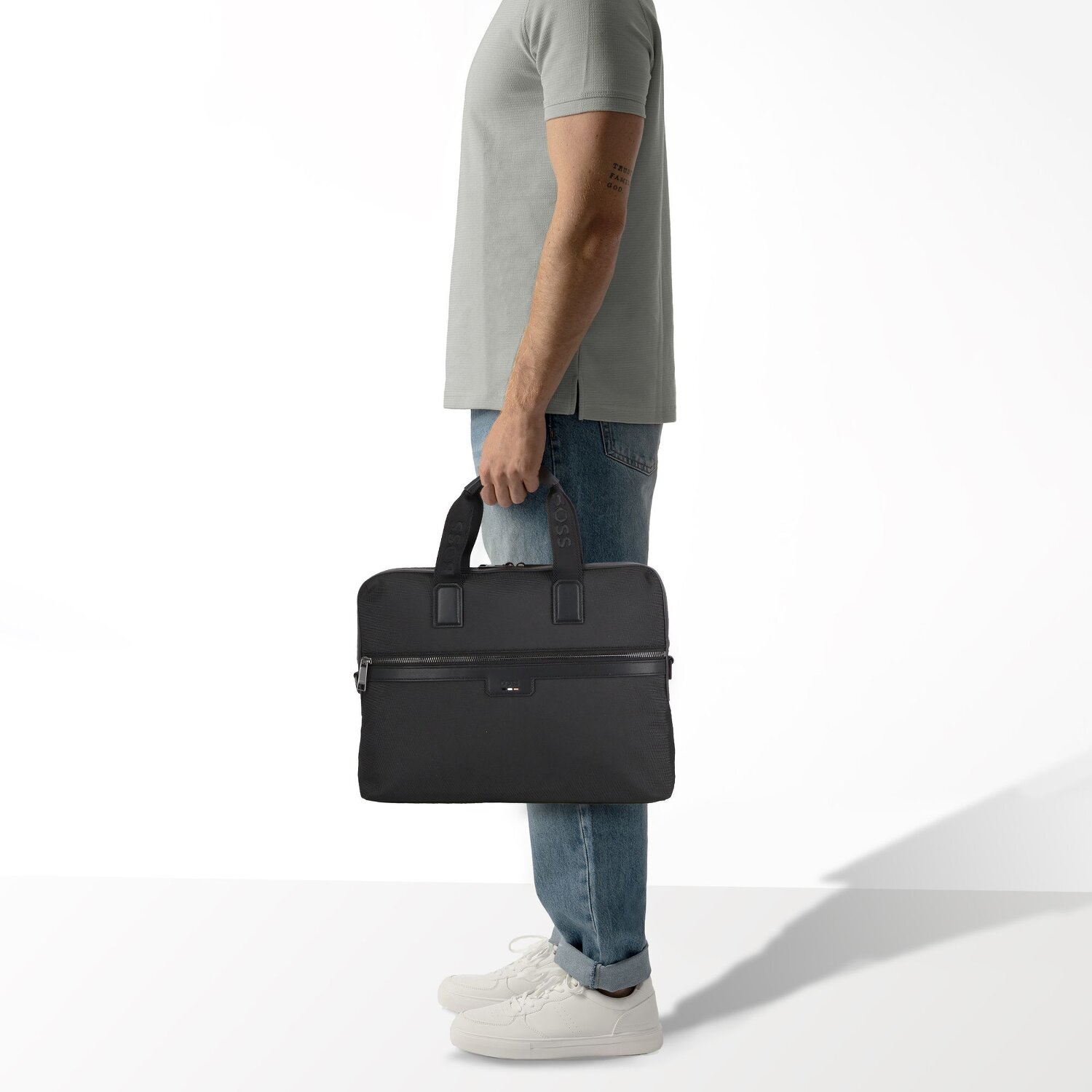 Satisfaga sus necesidades profesionales con estilo gracias a la bolsa para portátil Ray de Boss. Este bolso unisex fabricado en poliéster resistente, perfecto para hombres y mujeres, presenta un diseño sencillo pero elegante. Ofrece un compartimento con cremallera de fácil acceso y bolsillos exteriores adicionales, ideales para guardar de forma organizada los objetos importantes. Esta característica es especialmente práctica para los viajeros: esta bolsa puede engancharse a un trolley. Ningún portátil ha visto un hogar más bonito y seguro, gracias al compartimento integrado para portátil, apto para dispositivos de hasta 41 cm de diagonal de pantalla. Funcionalidad y estilo se unen en esta bolsa.