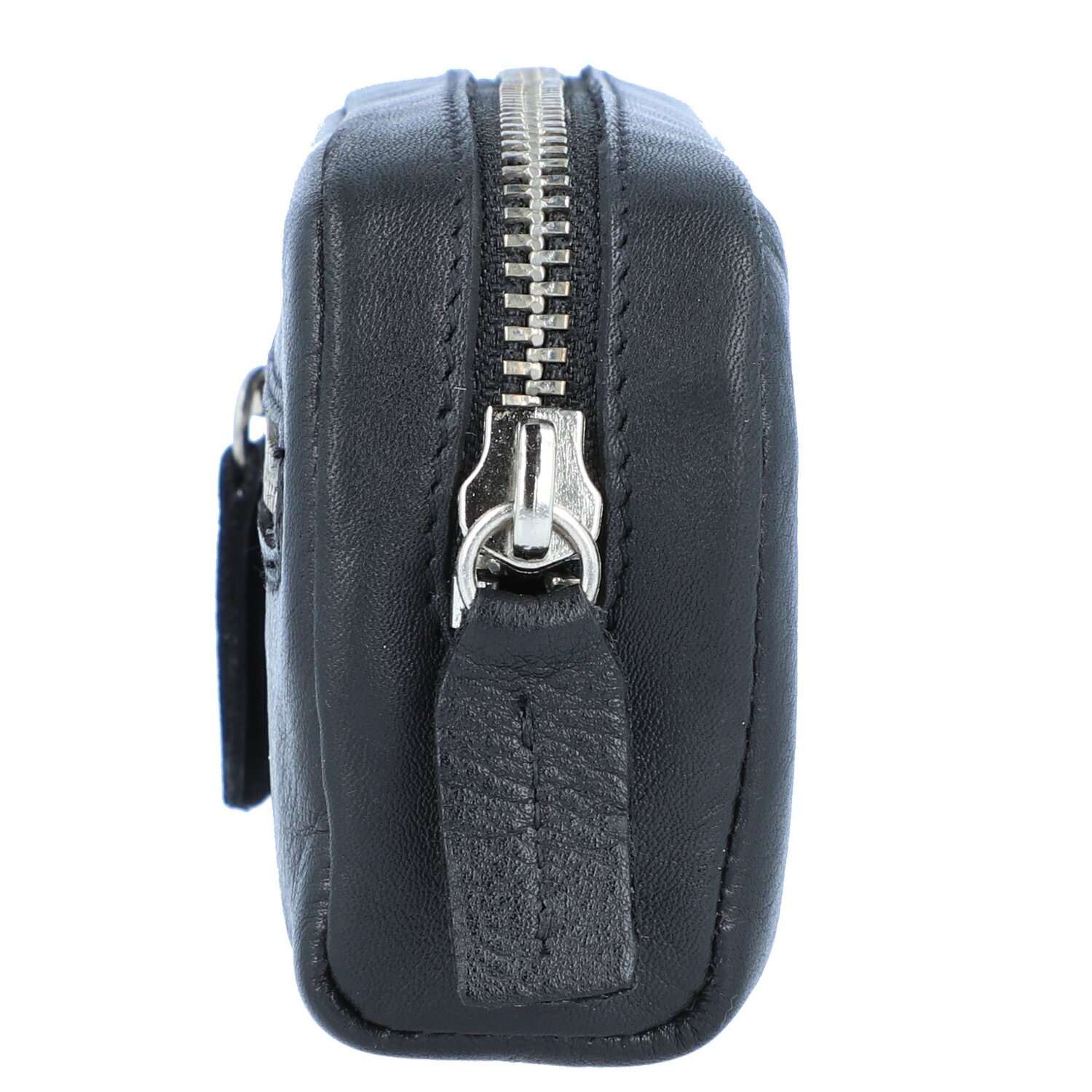 El estuche para llaves está fabricado en cuero fino y suave y equipado con dos anillas para sujetar las llaves.