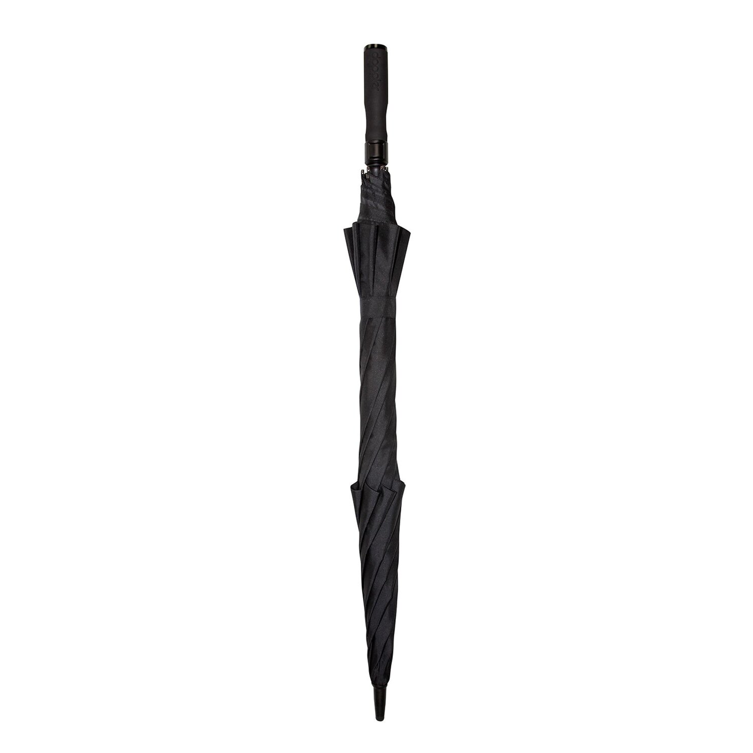 Elegante paraguas de caña de la marca Doppler con capacidad para dos personas a la vez. El paraguas se abre pulsando un botón, tiene una cómoda empuñadura y está fabricado en resistente fibra de vidrio y acero.