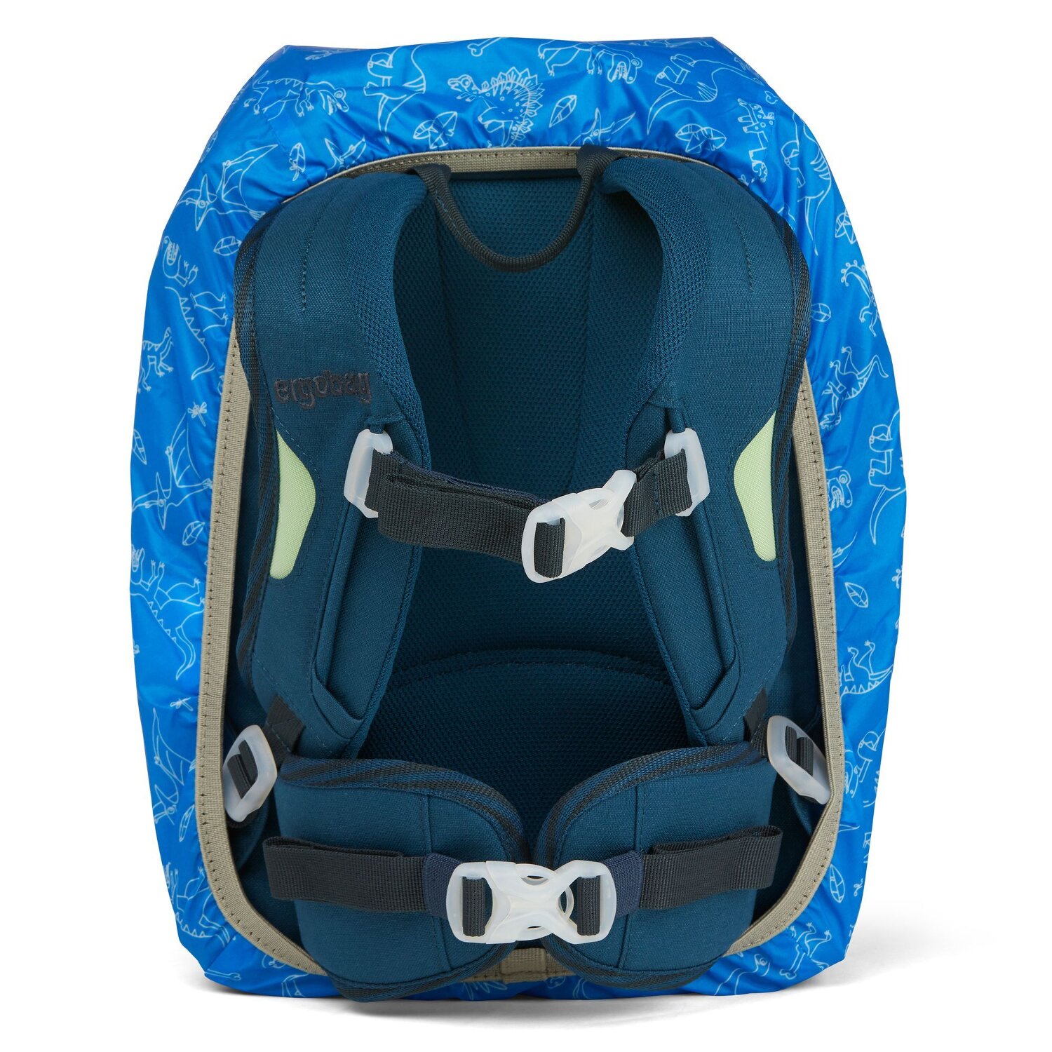 Capa de lluvia Mini Cubierta de lluvia adecuada para todos los modelos de ergobag-mini. La funda está fabricada con botellas de PET, repele el agua y la suciedad y protege la mochila del jardín de infancia de la lluvia intensa.