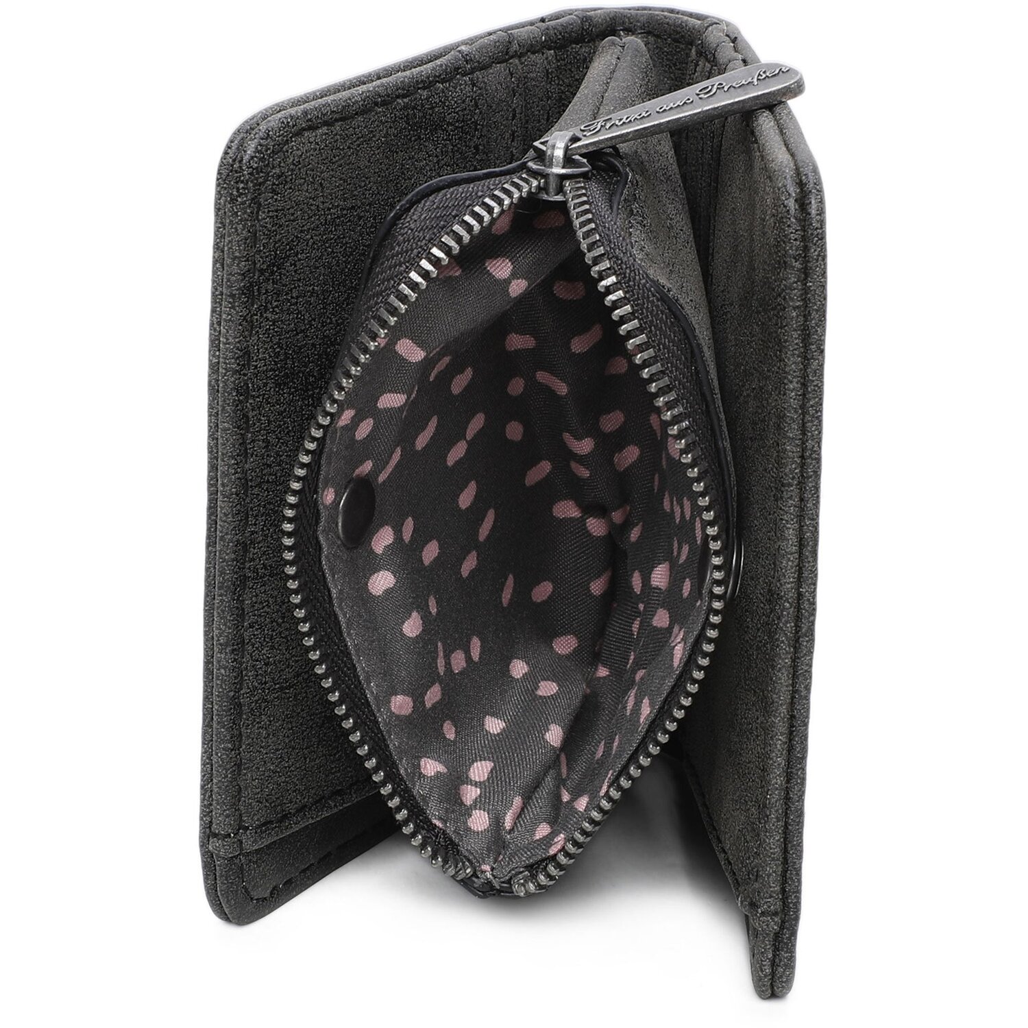 Bonita cartera de Fritzi aus Preußen con un interior claramente ordenado y espacio para tarjetas, billetes y monedas.