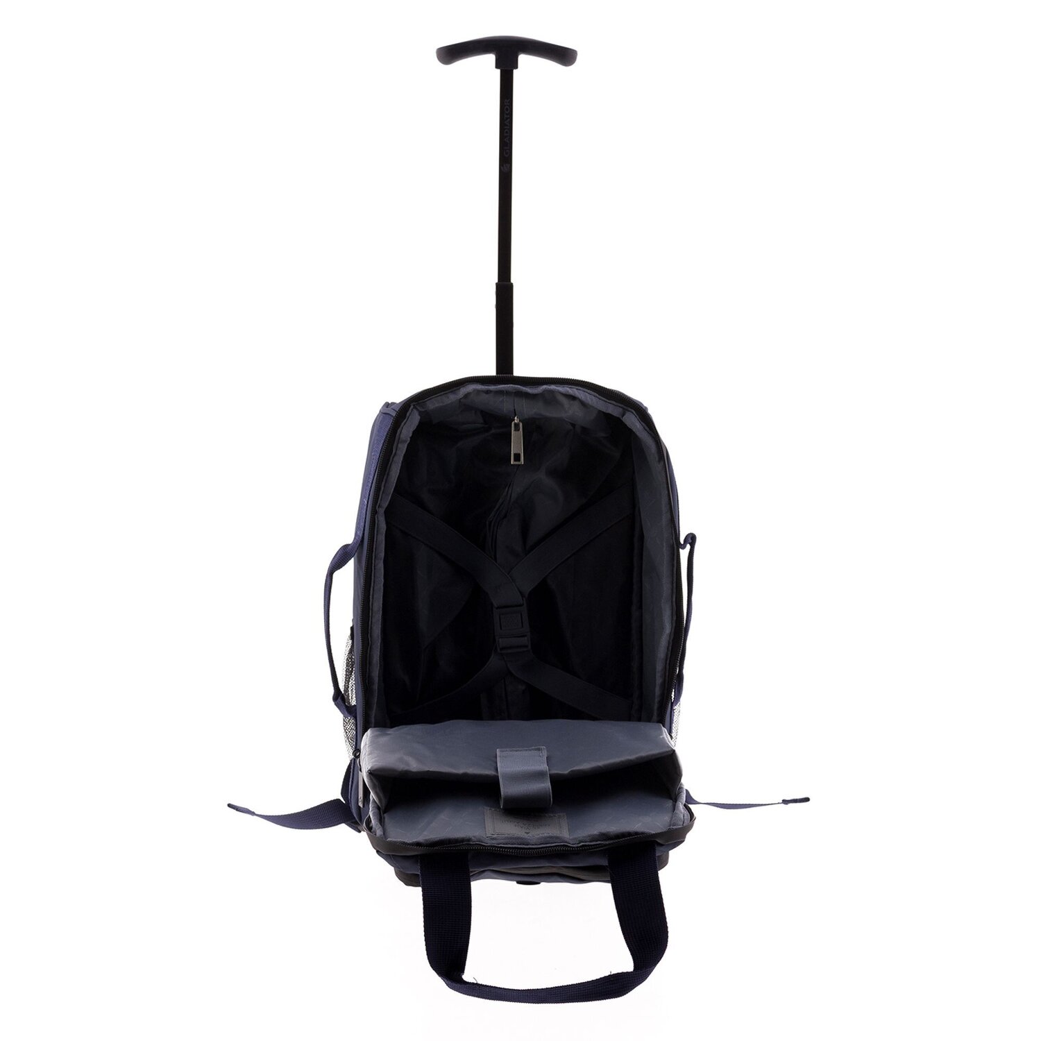 - Equipamiento: Correas elasticas interior, Bolsillo(s) interno(s), Bolsillo(s) externo(s), Asa telescópica