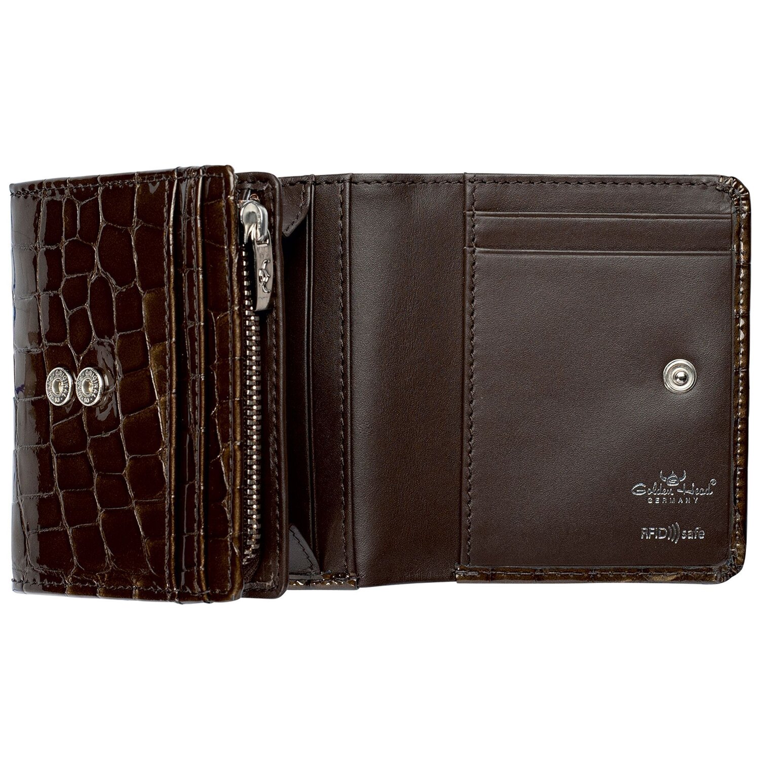 Moderna cartera de Golden Head fabricada en piel de alta calidad con aspecto de cocodrilo. La cartera ofrece una visión óptima y tiene numerosos compartimentos para dinero y tarjetas.