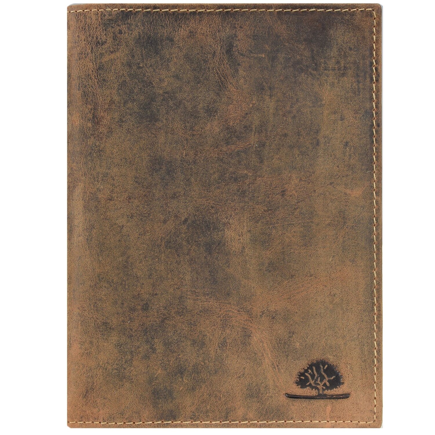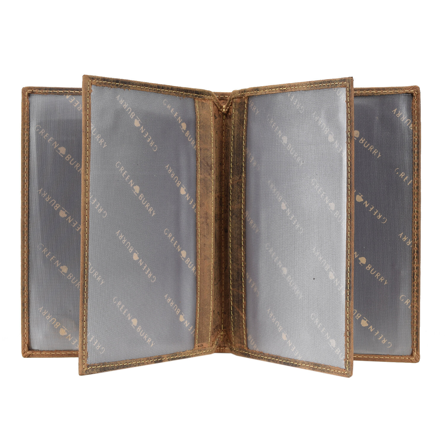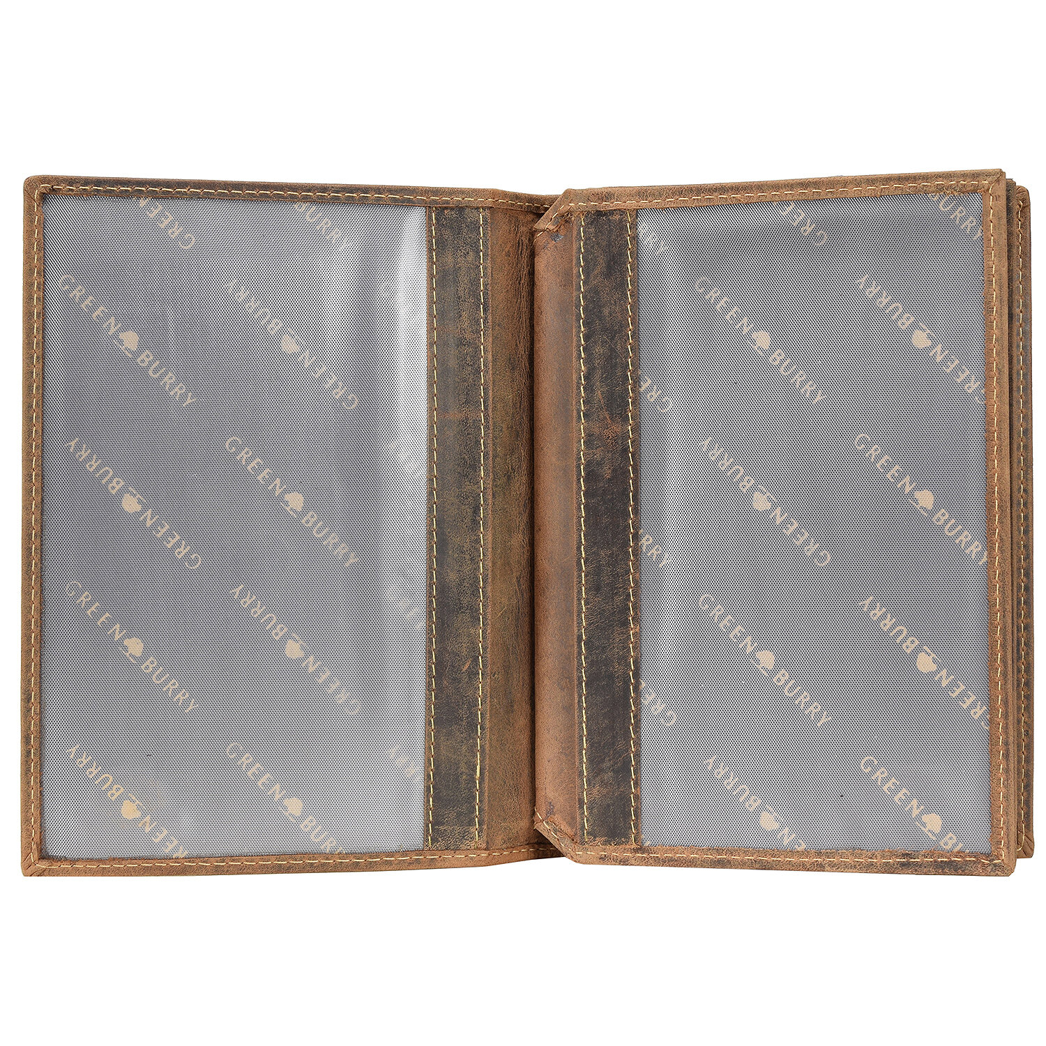 Greenburry Carpeta vintage de piel con compartimentos transparentes.