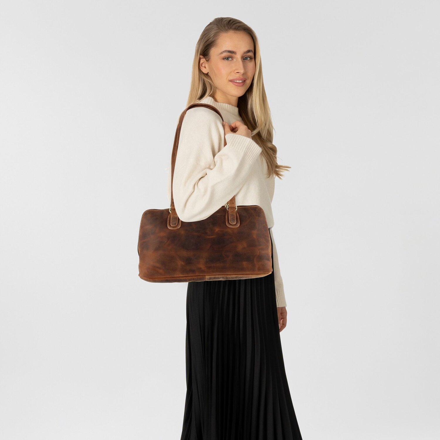 Elegancia y funcionalidad se funden en este bolso de la serie Vintage de Greenburry. Perfectamente adaptado al gusto femenino, ofrece características prácticas como bolsillos exteriores, un compartimento para el móvil y un bolsillo con cremallera. Fabricado en piel de alta calidad, brilla con un aspecto robusto pero sofisticado que realzará tus conjuntos. La cremallera de fácil manejo garantiza que tus objetos importantes estén siempre a mano y bien guardados. Un divisor inteligente te ayuda a organizar tus objetos esenciales. Gracias a la correa de longitud media para el hombro, el bolso puede llevarse de varias formas. Amplía tu vestuario de moda con este bolso de buen gusto que combina sin esfuerzo estilo y utilidad.