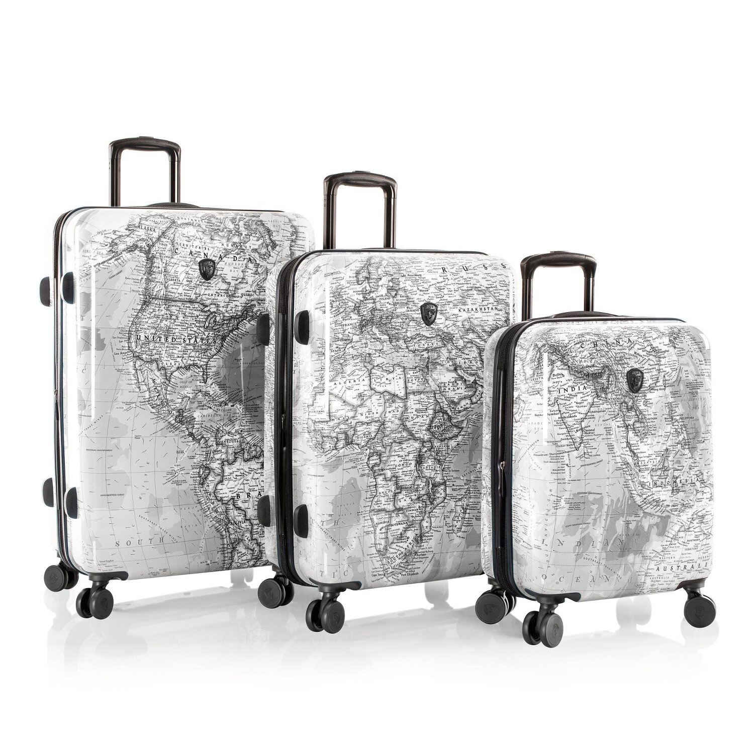 Heys Black Camo 4 ruedas Juego de maletas 3 piezas con pliegue de expansión