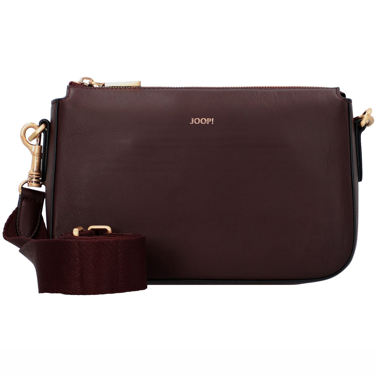 Elegante bolso de Joop! fabricado en suave piel con una correa de hombro desmontable y ajustable. El compartimento principal ofrece suficiente espacio para tus objetos de valor y está equipado con un compartimento con cremallera y dos bolsillos abiertos.