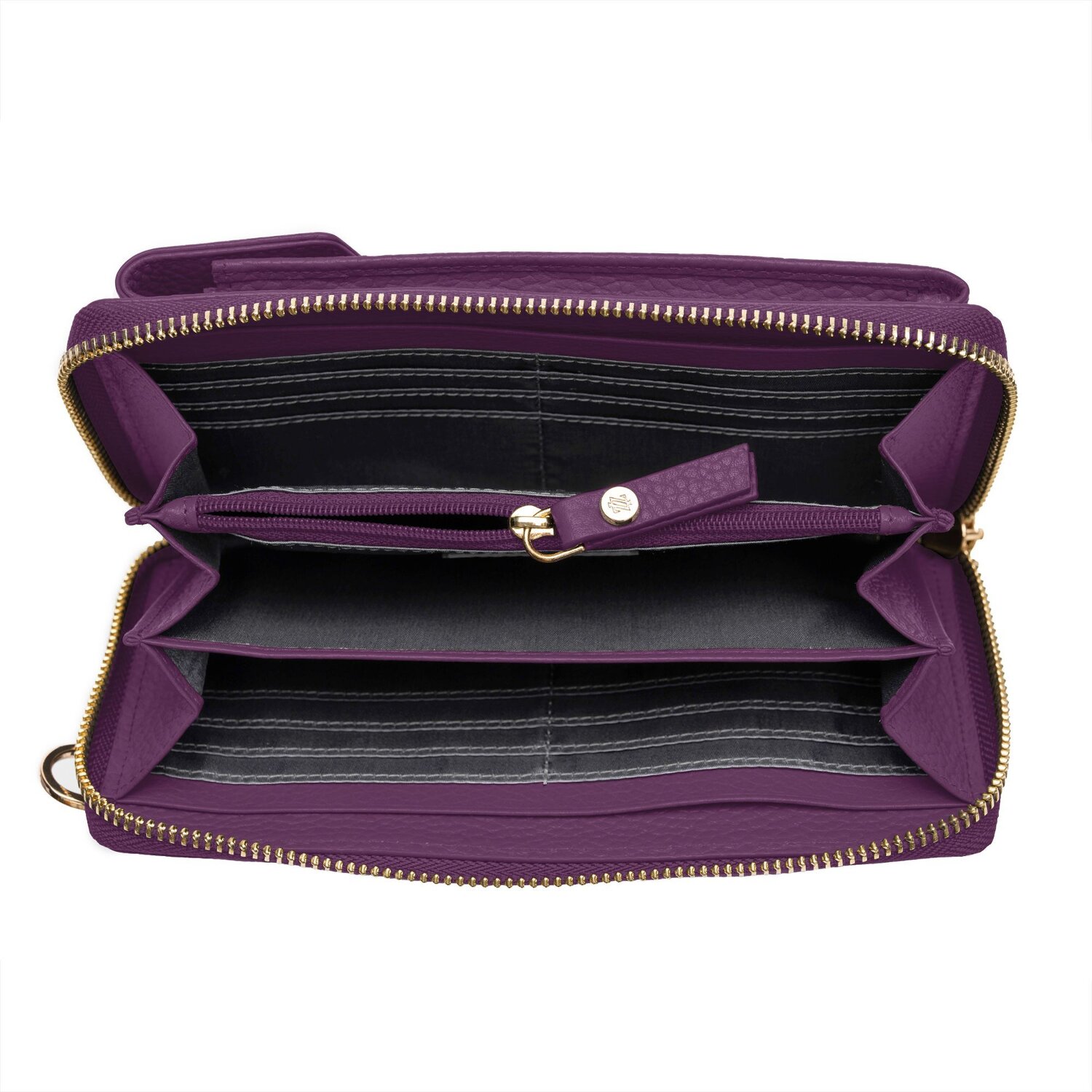 Das Etui für das portable Telefon passt und das Portemonnaie enthält in übersichtlicher Struktur viele nützliche Fächer.