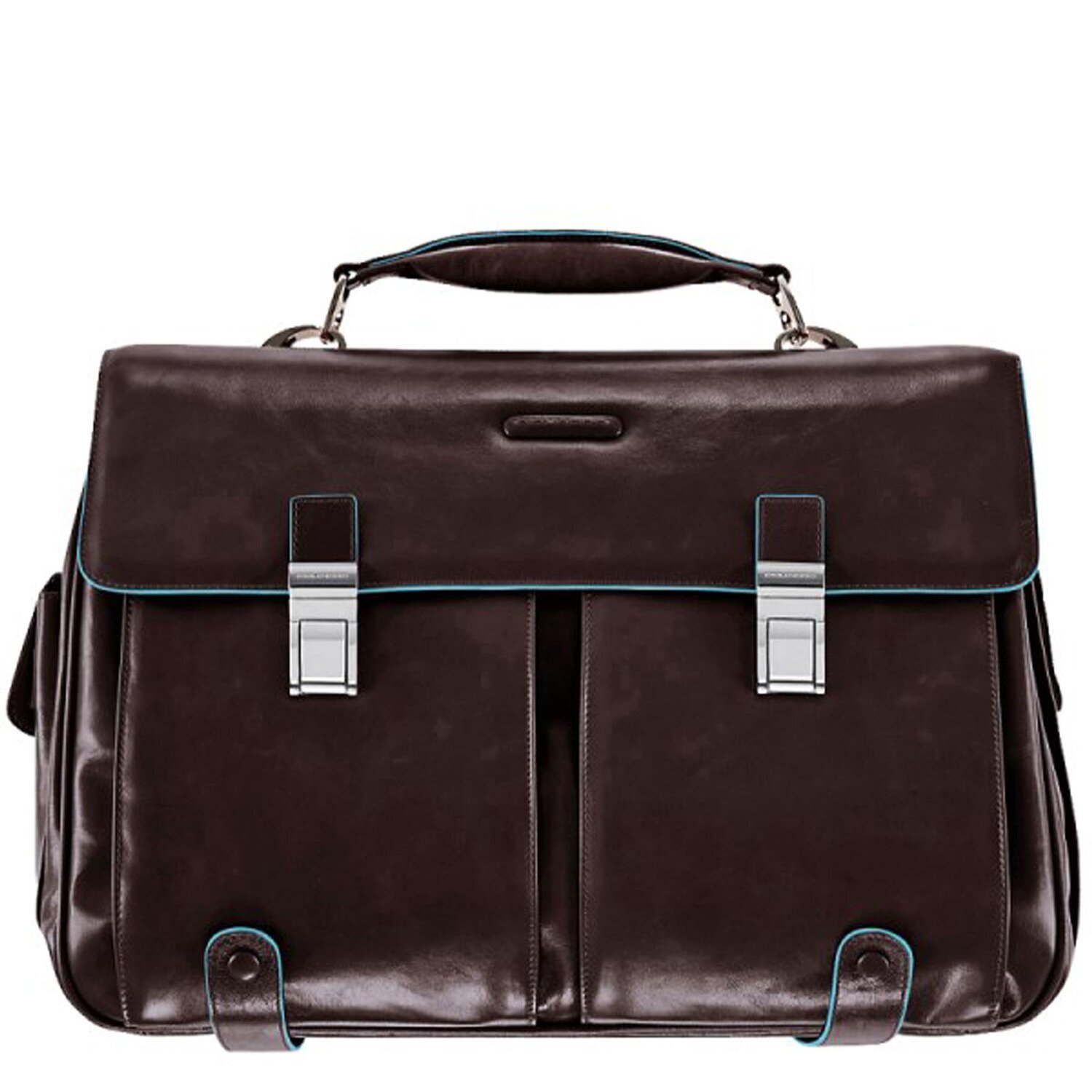 Piquadro Maletín cuadrado azul de cuero con compartimento para el portátil de 43 cm