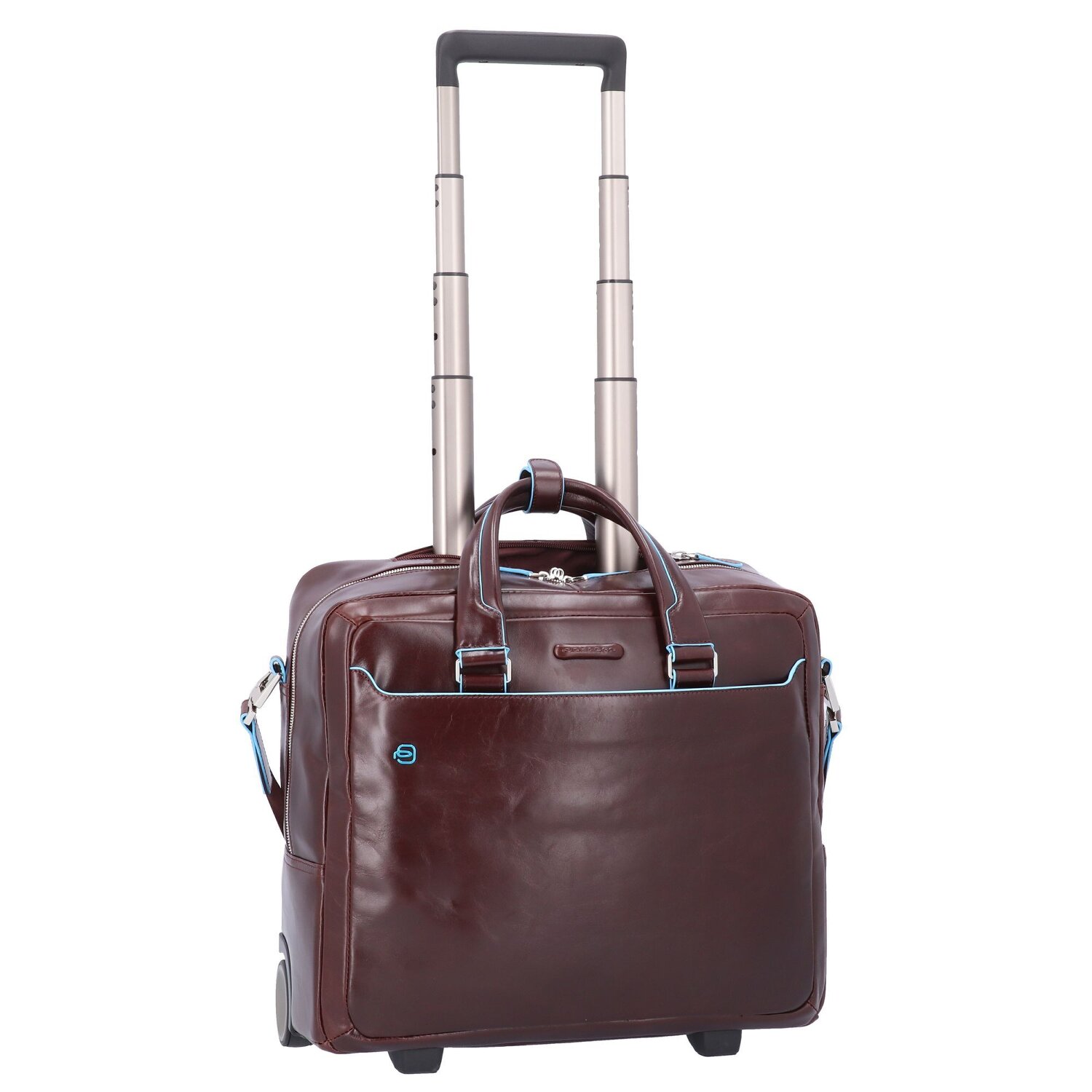 Piquadro Trolley azul cuadrado de 2 ruedas de cuero con compartimento para el portátil de 36 cm