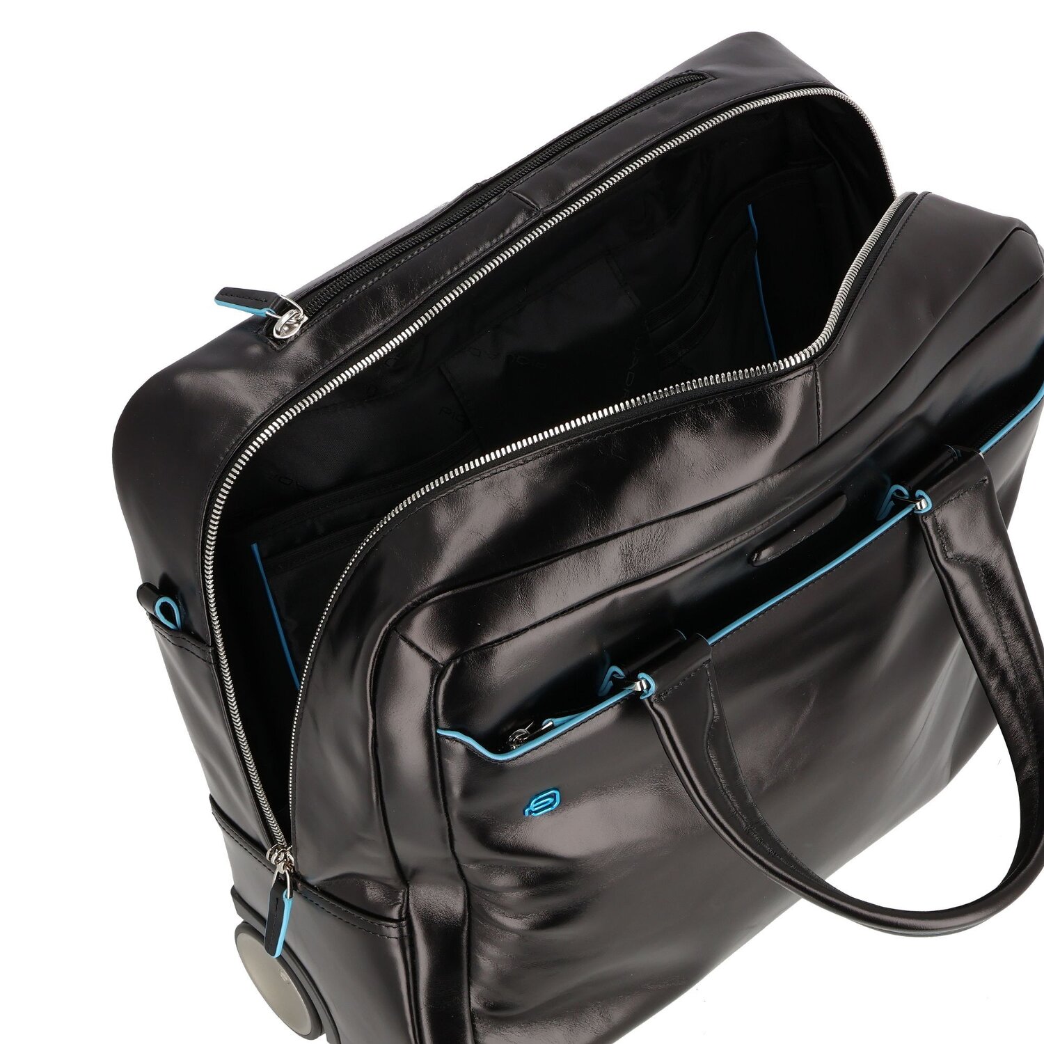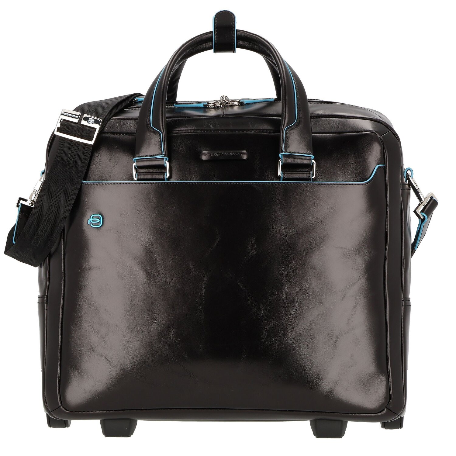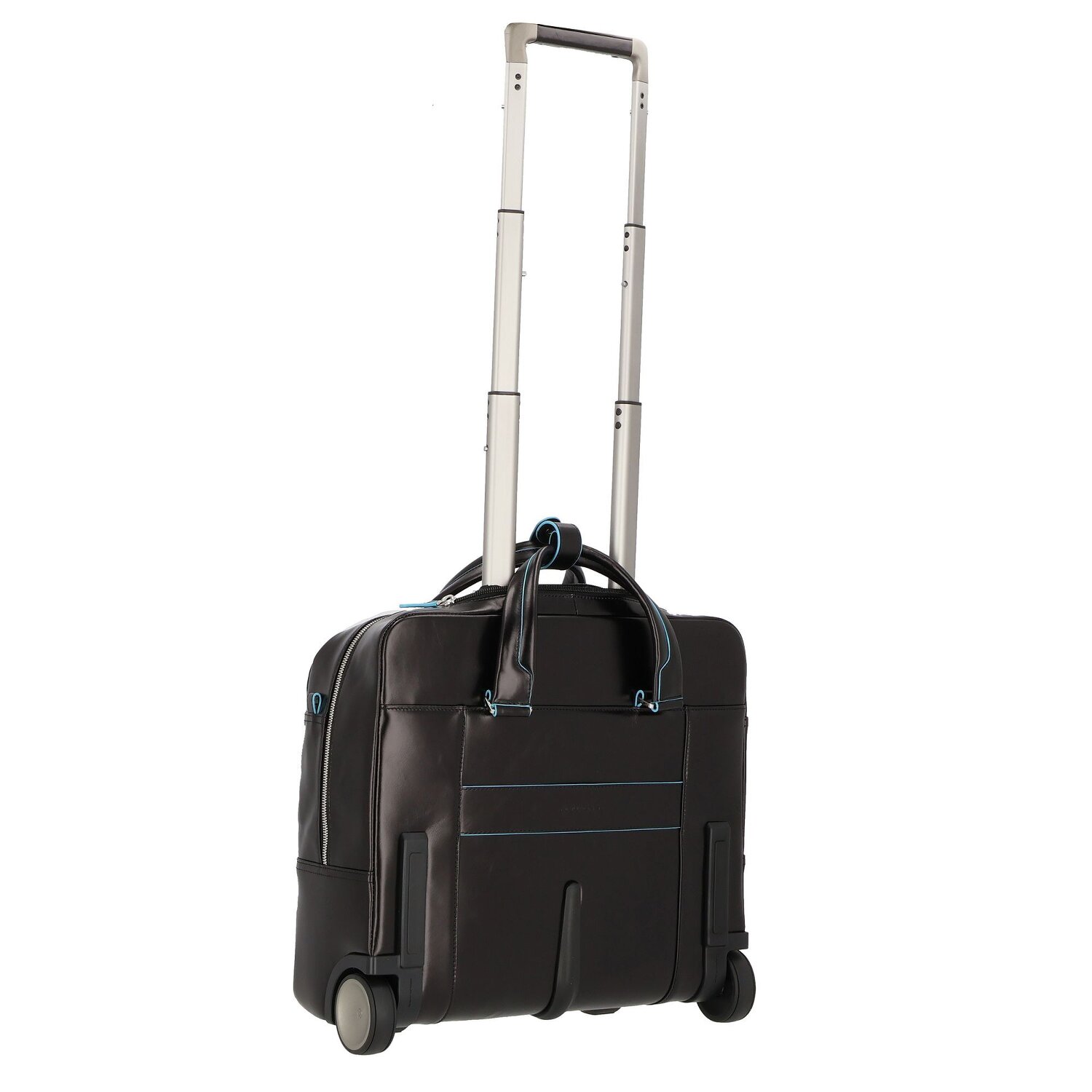 Piquadro Trolley azul cuadrado de 2 ruedas de cuero con compartimento para el portátil de 36 cm