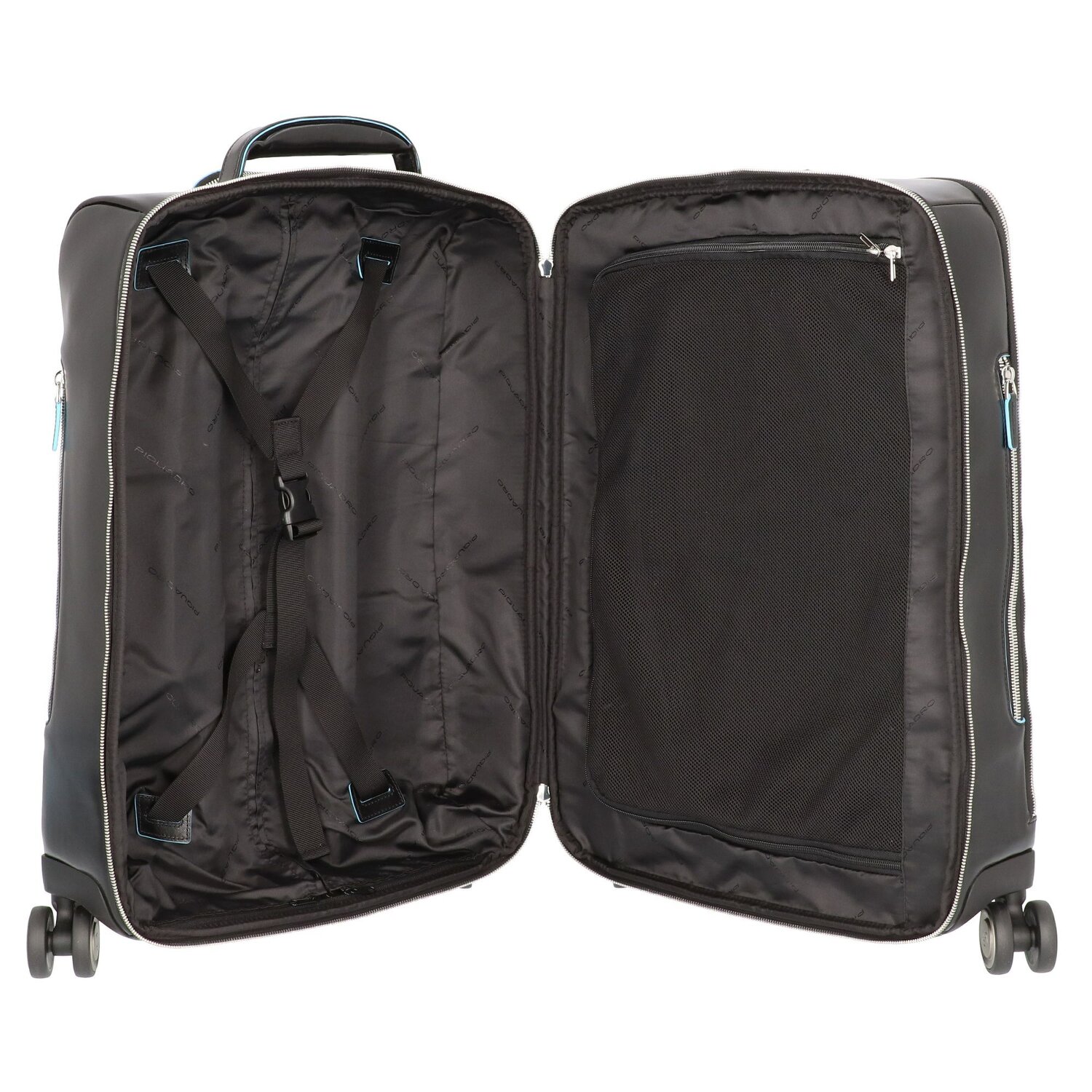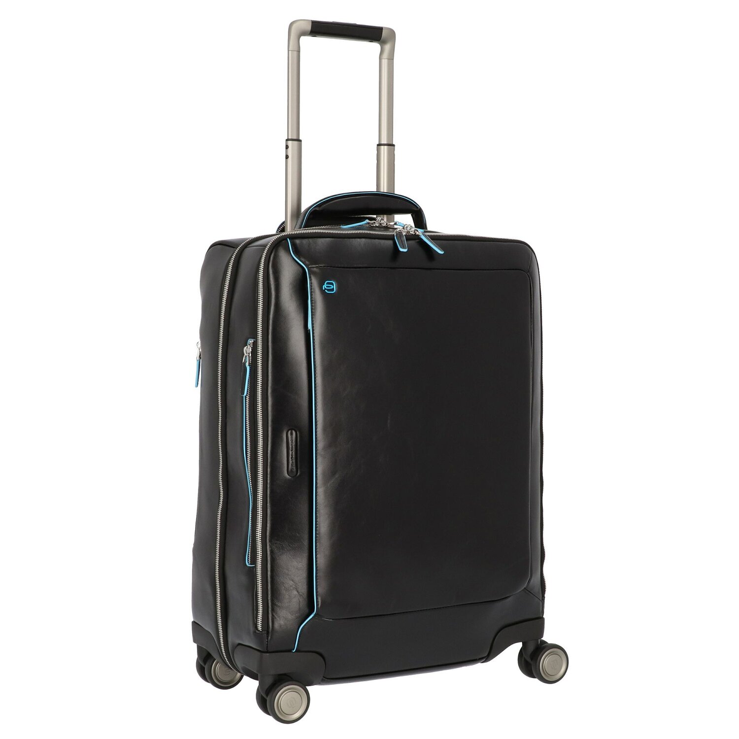 Piquadro Trolley de piel cuadrado azul de 4 ruedas con compartimento para portátil de 55 cm