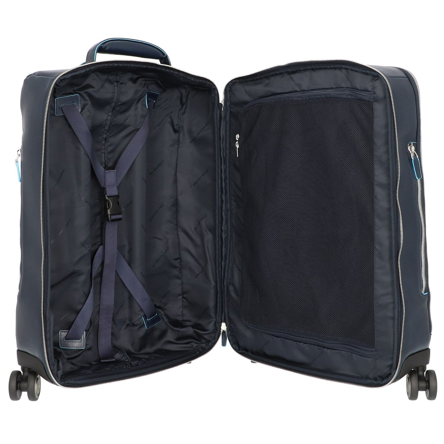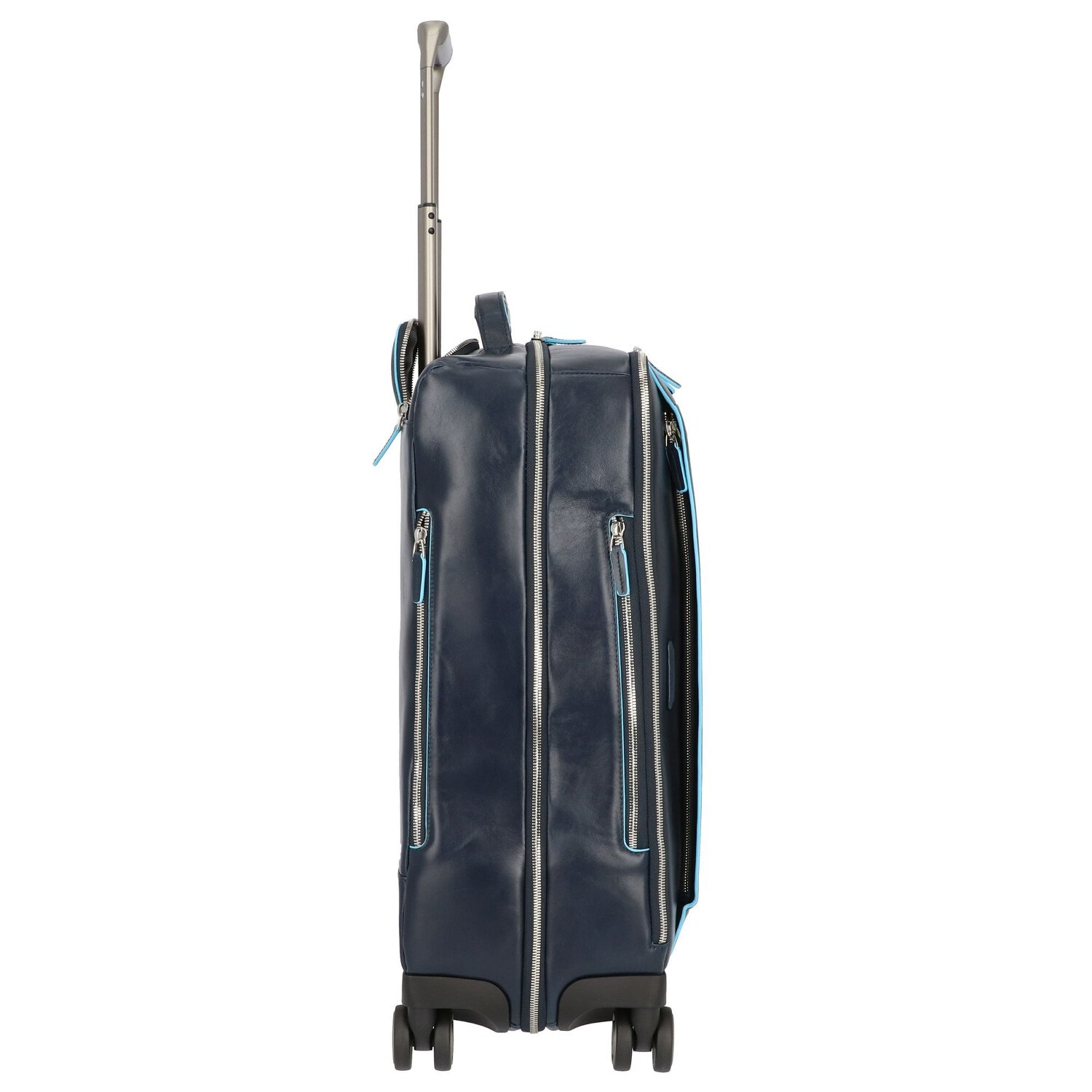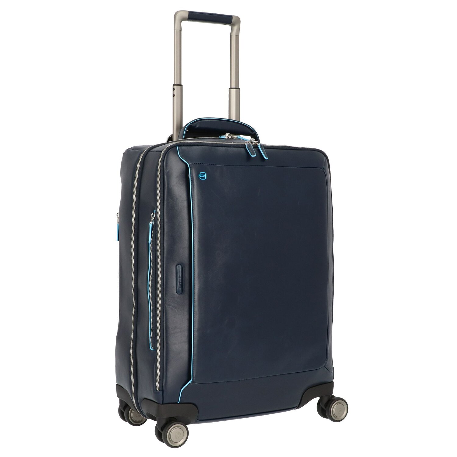 Piquadro Trolley de piel cuadrado azul de 4 ruedas con compartimento para portátil de 55 cm