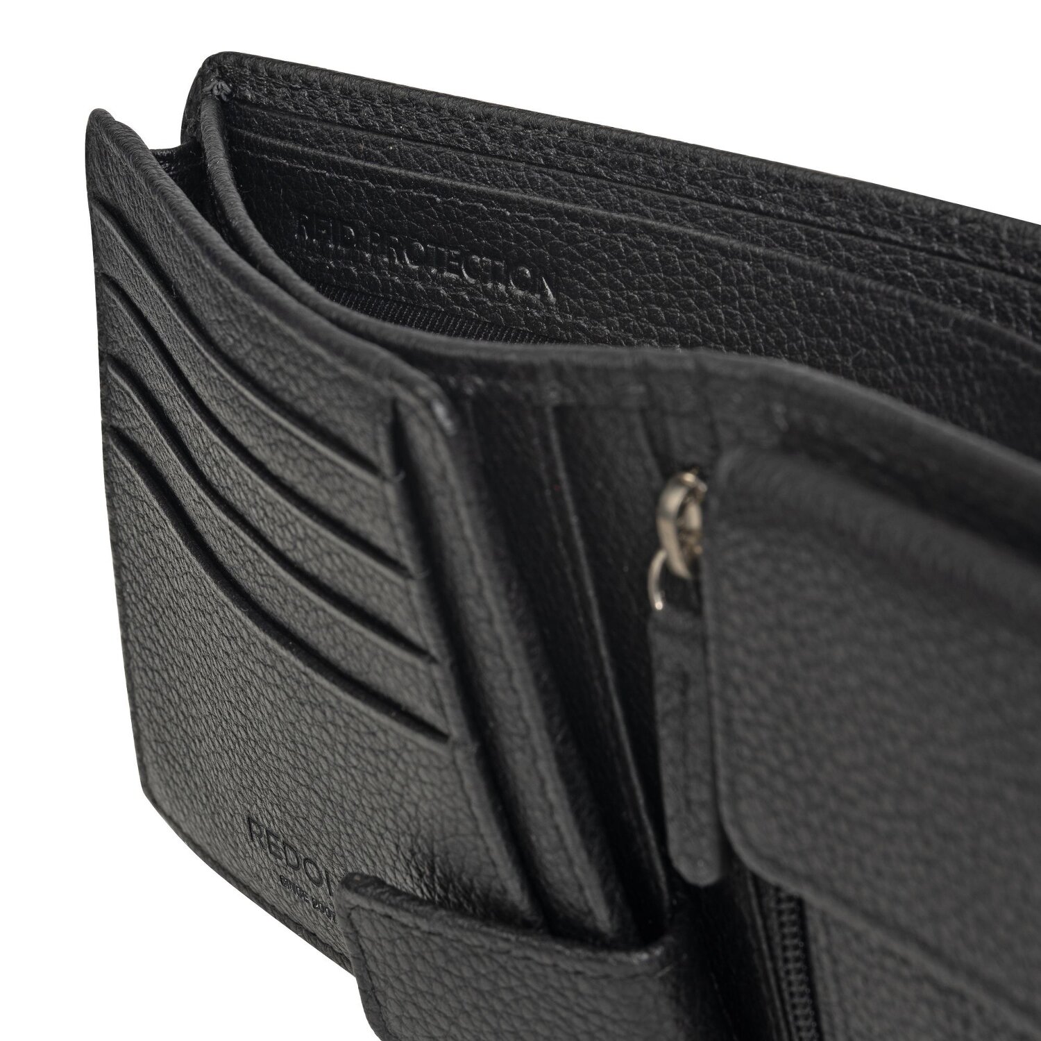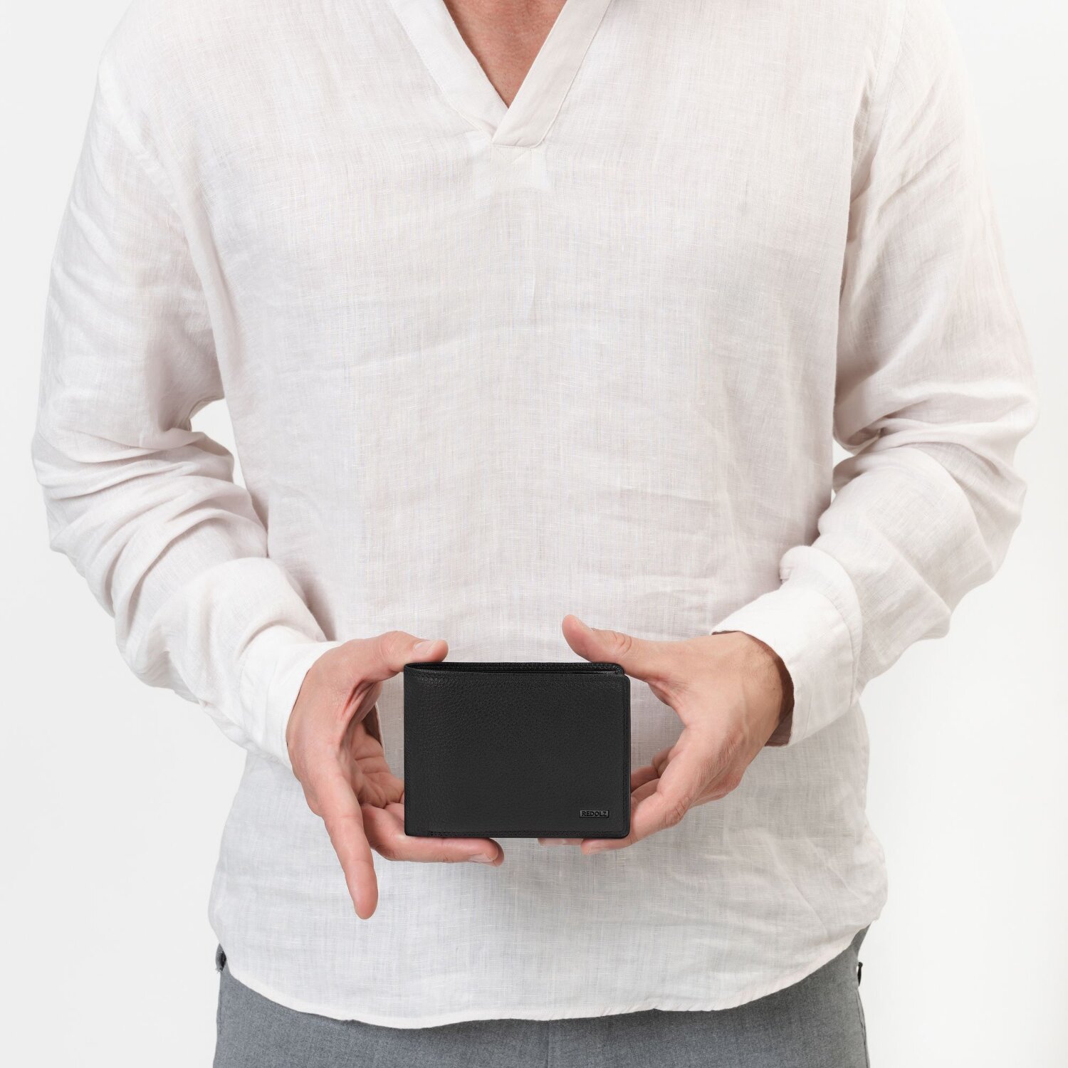 Elegante y moderna cartera de caballero de la marca Redolz con logotipo en la parte delantera fabricada en piel de alta calidad. En el interior hay 12 ranuras para tarjetas, 2 compartimentos para billetes, un compartimento para monedas y varios bolsillos abiertos. Un pequeño compartimento con cremallera completa la cartera y la protección RFID le protege del robo de datos. Un accesorio ideal para el día a día.