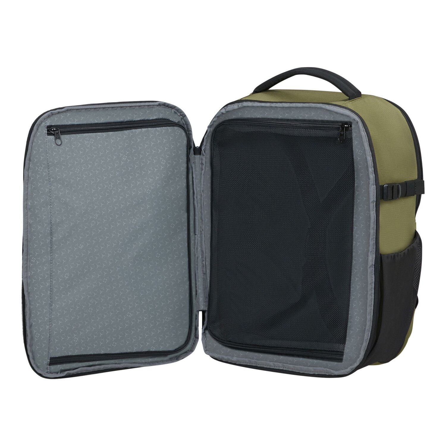 - Equipamiento: Trabilla para asa, Correas elasticas interior, correas de compresión, Correa pectoral, Compartimento para ropa, Compartimento para botellas de agua, Compartimento con cierre de cremallera, Acolchado del respaldo