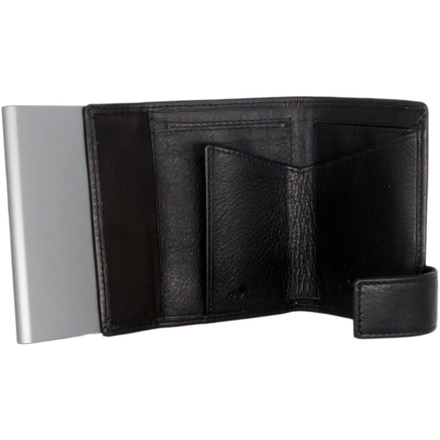 El tarjetero SecWal está fabricado en piel de alta calidad. El compartimento para tarjetas de crédito, fabricado en aluminio resistente, puede alojar hasta 8 tarjetas y también ofrece protección RFID contra el robo de datos. El noble estuche de piel de la mejor calidad, disponible en muchos diseños diferentes, garantiza una elegancia individual y dispone de dos bolsillos abiertos, un monedero y un bolsillo para billetes.