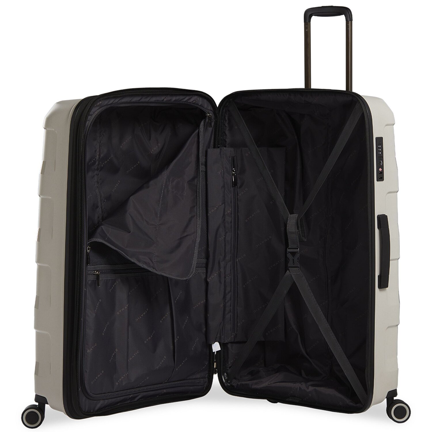 - Equipamiento: Extensible, Correas elasticas interior, Compartimento con cierre de cremallera, Asa telescópica
