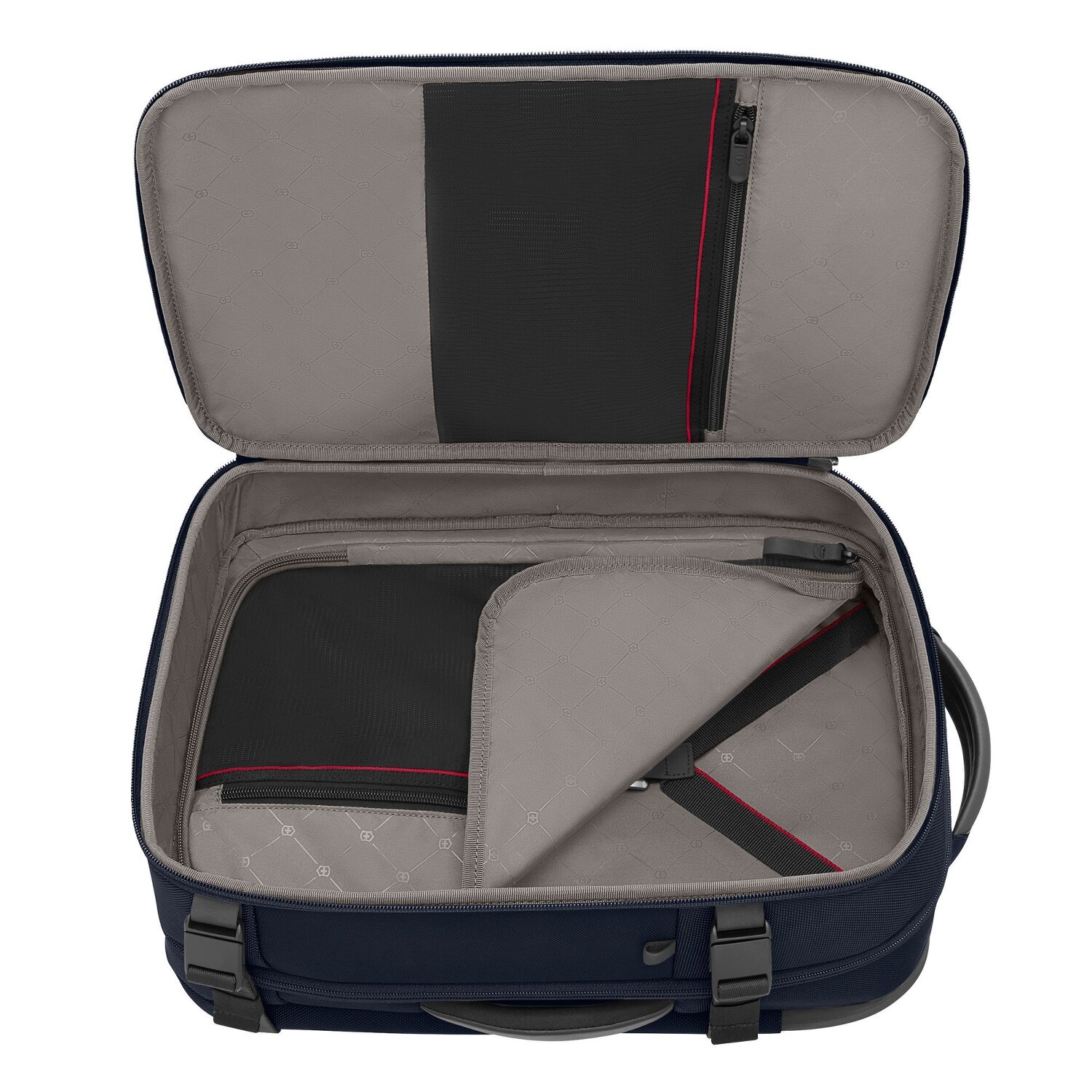 - Equipamiento: Trabilla para asa, Correas elasticas interior, Compartimento para ropa, Compartimento con cierre de cremallera, Bolsillo(s) interno(s), Bolsillo(s) externo(s), Acolchado del respaldo
