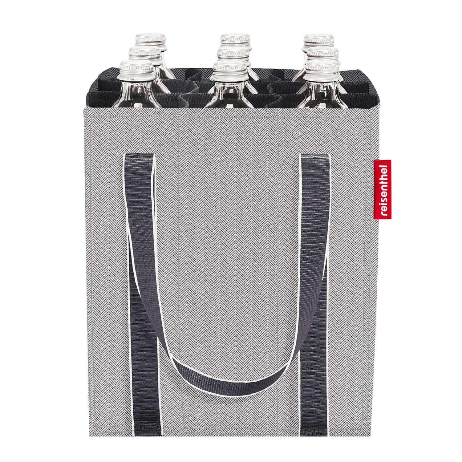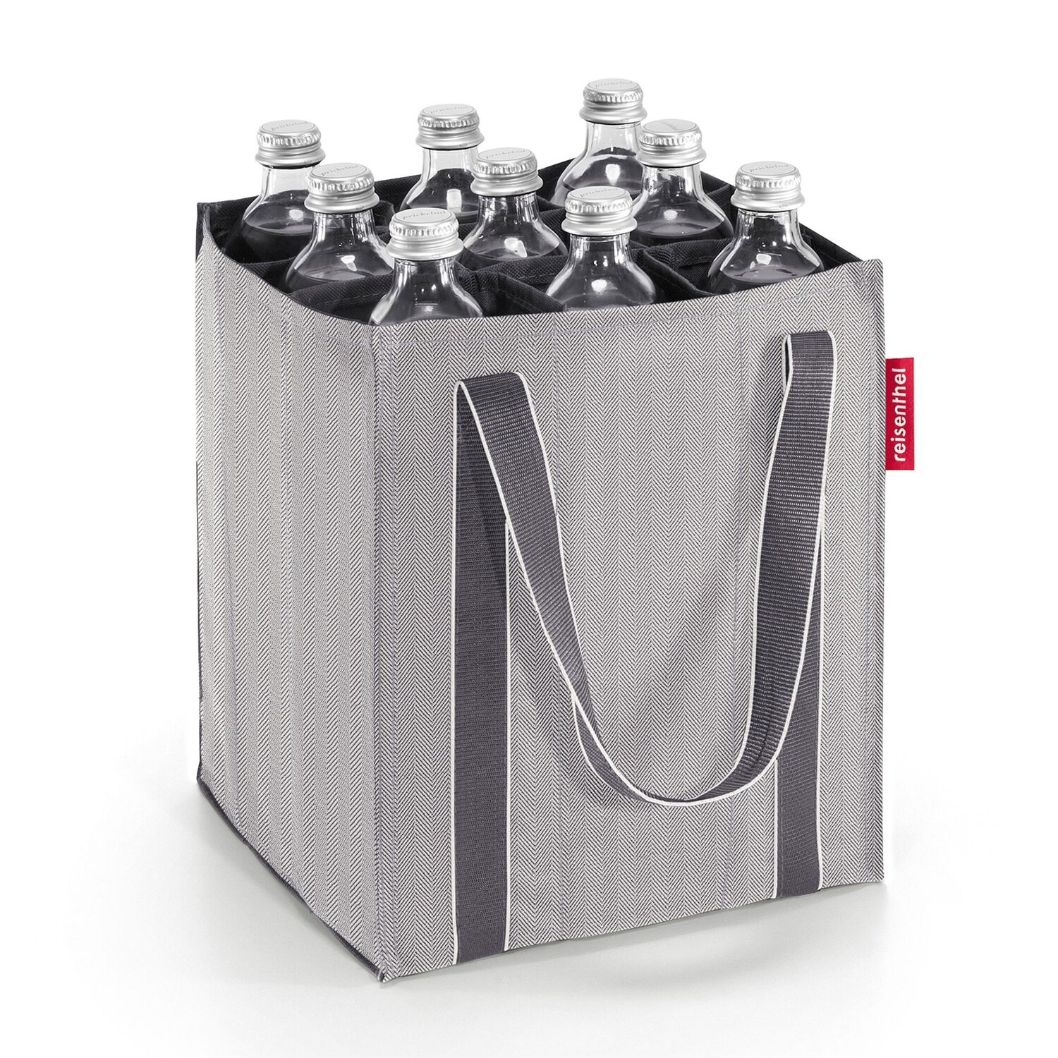 Práctica bolsa de la marca reisenthel fabricada en robusto poliéster. El interior de la bolsa tiene un total de 9 compartimentos para botellas de 0,75 litros. La bolsa es muy fácil de plegar y está lista para volver a utilizarse la próxima vez que vaya de compras.